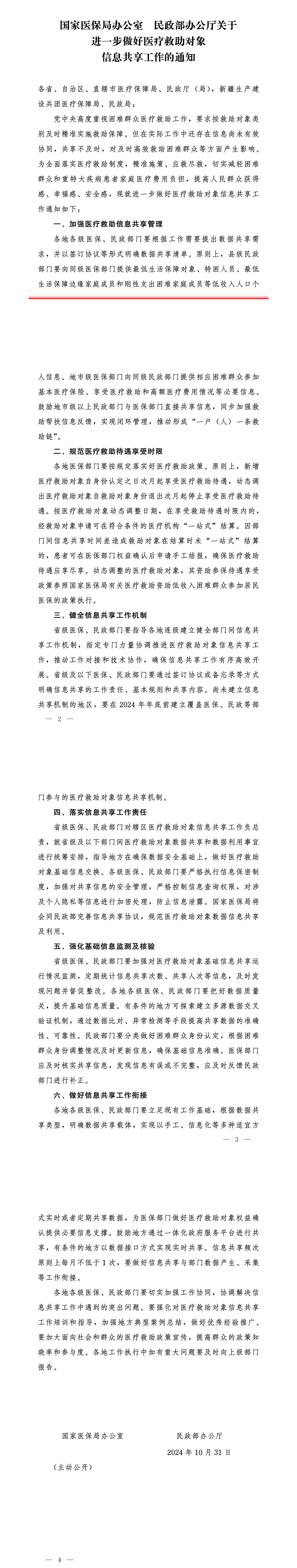 文件下载链接:国家医保局办公室 民政部办公厅关于进一步做好医疗救助对象信息共享工作的通知