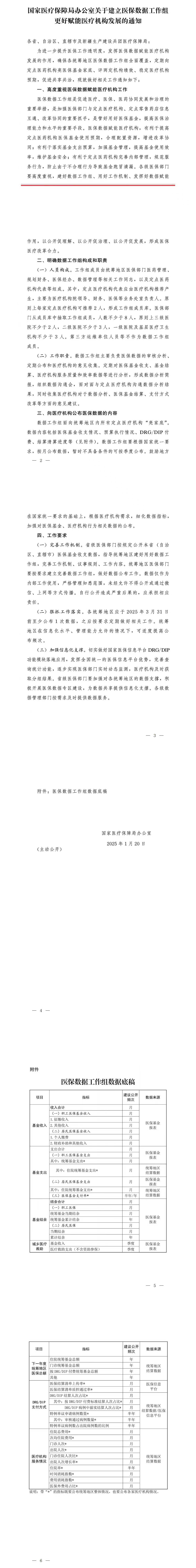国家医疗保障局办公室关于建立医保数据工作组更好赋能医疗机构发展的通知