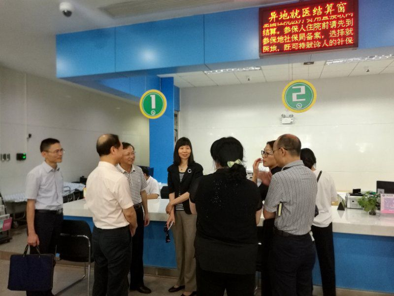 调研组实地考察了清远市人民医院医疗机构医保服务点和医疗救助经办服务窗口以及清远市社保局医保经办服务窗口。重点听取了医保服务、医疗救助经办服务情况和信息化建设情况,对清远市异地医疗救助一站式直接结算工作给予肯定。